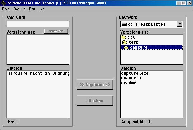 - PCRAM Software für das Carddrive unter Windows (9x)